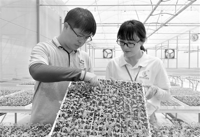 近日,在乐平市乐平以色列农业科技示范园项目基地高科技育苗工厂大棚,工作人员正在检查生菜菜苗长势。该农业科技示范园采用自动化生产设备、物联网装备和无土栽培技术等,大大提高了秧苗的产量和质量。