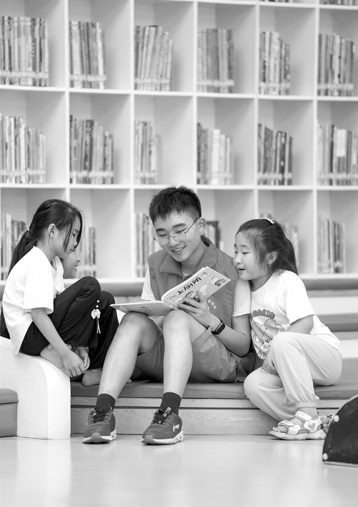 近日,在萍乡市湘东区图书馆少儿阅览室,一名志愿者带着小朋友们一起读书,乐享阅读时光。