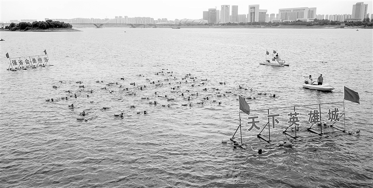 7月8日下午,200余名游泳爱好者齐聚南昌市赣江边,组成多个方阵依次入水,加紧训练,积极备战即将举行的2023年南昌市千人横渡赣江活动。