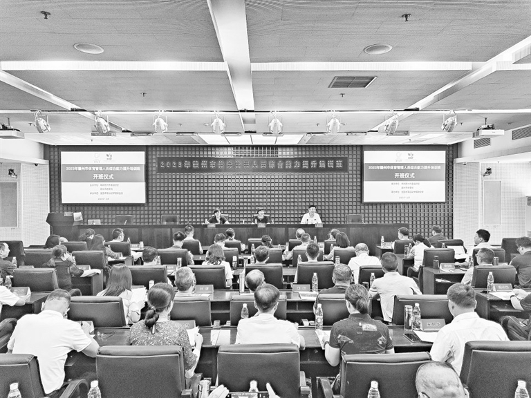 7月10日,由中共赣州市委组织部、赣州市体育局主办,全国体育运动学校联合会承办的2023年赣州市体育管理人员综合能力提升培训班在北京体育大学开班,市体育局县处级领导、机关科室干部及下属单位副科级以上干部,各县(市、区)分管体育工作县领导、教科体(教体)局局长及业务科(股)室负责人等共计100余人参加。