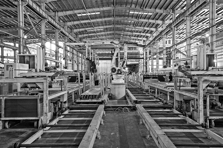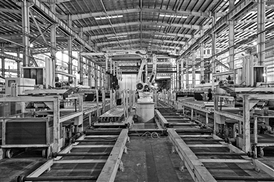 记者在生产车间看到,铝型材边框自动化生产线上,工人们忙而有序,一台台行车来回穿梭于生产线上方,将成吨货物吊装到下一道工序。自动生产线旁,立式氧化生产线二期项目正在进行设备安装。