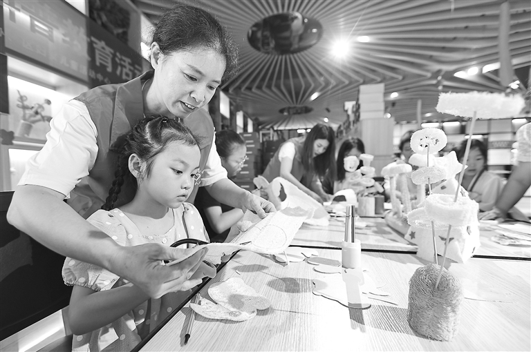 | ▲7月13日,来自抚州市东乡区虎圩乡的党员志愿者正在指导留守儿童制作丝瓜络工艺品。暑假期间,东乡区面向留守儿童开设丝瓜络制作工艺体验课,让孩子们感受当地传统非遗文化的魅力。