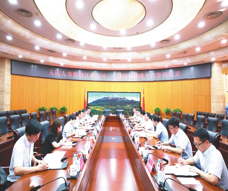 近日,上饶银行与中国人民人寿保险江西省分公司达成战略合作协议。战略合作签约开启双方合作全面升级、携手共进、共谋发展新篇章,双方将发挥优势,积极探索“银行+保险”金融服务合作模式,在助力地方经济发展的同时,为客户提供专属风险保障。王一婷摄