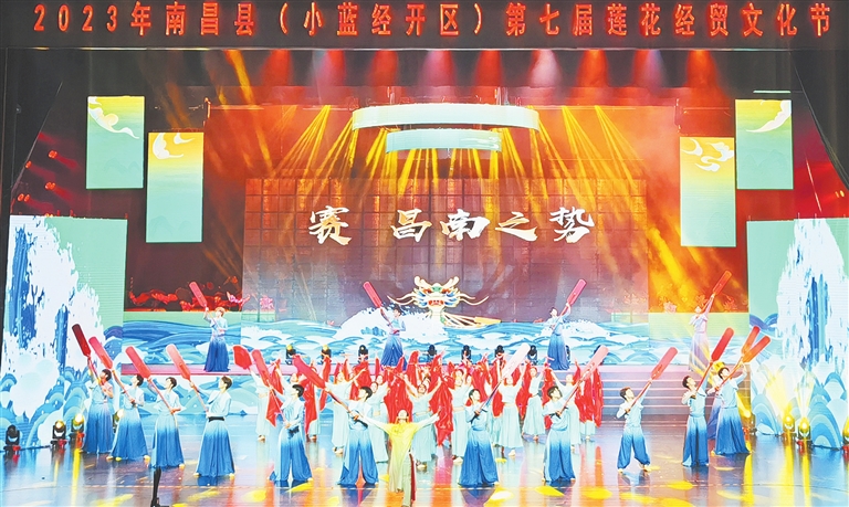 本届莲花经贸文化节的开幕活动由展陈、开幕仪式、文艺演出三部分组成。同时,整个活动还设置了线上直播及云端互动。“文化搭台,经贸唱戏。”南昌县(小蓝经开区)围绕“拼经济 促发展”主线实施全面推动经济社会高质量发展系列举措。