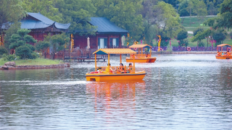 7月18日,宜春市袁州区暑期游持续升温,游客在松鼠部落景区乘坐游船避暑休闲。近年来,当地积极探索旅游发展新模式,加快旅游业与其他产业融合发展,把生态优势转化为经济优势,着力走好“农文旅”深度融合发展之路。