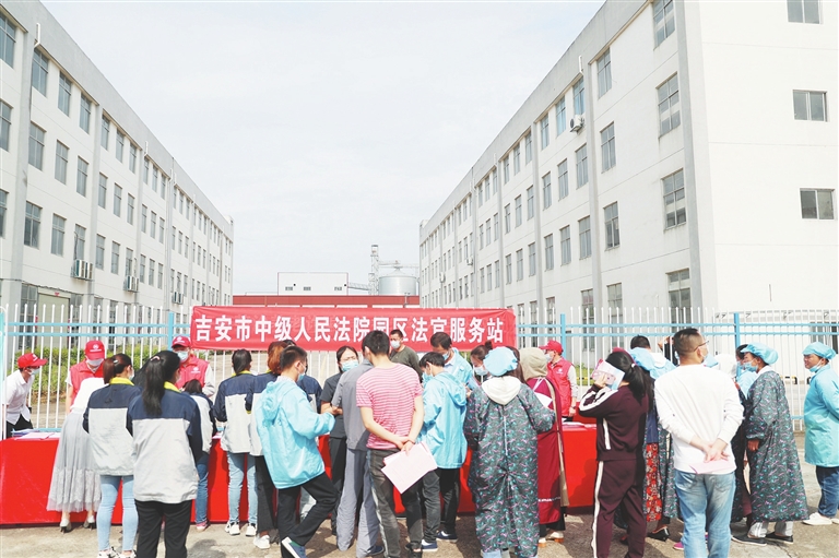 今年以来,吉安中院积极开展向企业问需纳谏、减轻涉诉企业诉累、加大善意文明执行、加强司法救济的“暖企”“助企”“护企”“惠企”四项行动。2022年,该院牵头的“办理破产”和“执行合同”两项优化营商环境考核指标均位于全省前列。一项工作经验入选全省法院服务保障营商环境优化升级十大典型案事例,一案例入选全国法院助力中小微企业发展典型案例。2023年5月,吉安中院被省委、省政府评为江西省优化营商环境先进集体。图为近日该院设在井冈山经济技术开发区工业园的法官服务站活动现场。张慧斌摄