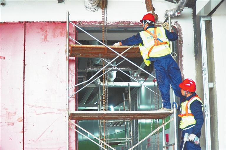 近日,赣江新区人防工程平战转换演练举行,参练组员进行地下车行环路出入口及风井战时封堵演练。