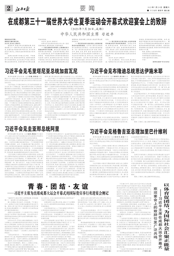 ~~~——习近平主席在成都大运会开幕式欢迎宴会上的致辞引发广泛共鸣