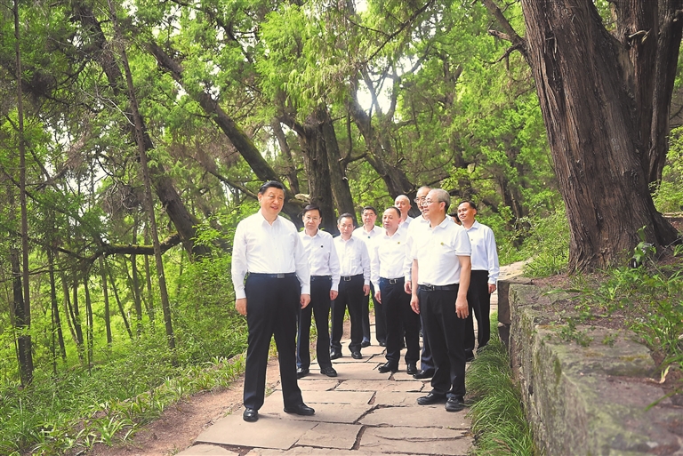 25日下午,习近平首先来到广元市剑阁县考察了翠云廊。这里是古代关中平原通往四川盆地古蜀道的重要路段,有迄今保存最完好的古代人工栽植驿道古柏群。习近平听取古蜀道发展历程、翠云廊整体情况介绍,沿古道步行察看千年古柏长势,详细询问历史上植柏护柏情况。他指出,这片全世界最大的人工古柏林,之所以能够延续得这么久、保护得这么好,得益于明代开始颁布实行“官民相禁剪伐”、“交树交印”等制度,一直沿袭至今、相习成风,更得益于当地百姓世代共同守护。这启示我们,抓生态文明建设必须搭建好制度框架,抓好制度执行,同时充分调动广大人民群众的积极性主动性创造性,巩固发展新时代生态文明建设成果。临行前,他嘱咐当地负责同志,要把古树名木保护好,把中华优秀传统文化传承好。