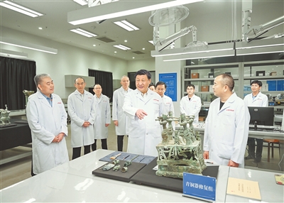 习近平十分关心汉江流域历史文化传承和生态保护。7月29日,在返京途中,习近平走下列车,在陕西省委书记赵一德、省长赵刚陪同下,来到汉中市考察。习近平参观汉中市博物馆有关历史文物展陈,了解汉中历史文化、文物保护情况。他指出,文物承载灿烂文明,传承历史文化,维系民族精神。要发挥好博物馆保护、传承、研究、展示人类文明的重要作用,守护好中华文脉,并让文物活起来,扩大中华文化的影响力。汉中藤编等非物质文化遗产久负盛名,要发展壮大特色产业,更好带动群众增收致富。离开博物馆时,附近的乡亲们围拢过来热情欢呼“总书记好”。习近平亲切地对大家说,我在2008年汶川大地震抗震救灾时来过汉中,这些年一直牵挂着这里。这次来,看到这里发展变化很大,城市井然有序,很欣慰。他祝愿大家工作好、生活好、家庭幸福。