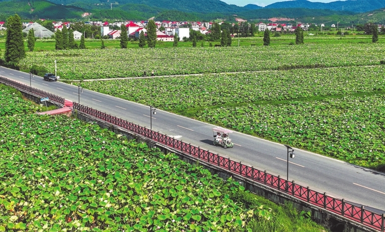 7月29日,游客在莲花县荷花博览园内观赏荷花。当天,台风“杜苏芮”与萍乡市擦肩而过,景点正常开放,市民生产生活正常。特约通讯员 李桂东摄