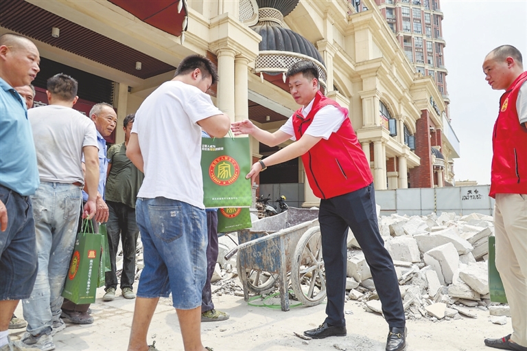 “老人家,您的眼睛有患白内障的风险,建议尽快去医院就诊。”“您好,家里的空调已经清洗完毕,有需要再跟我们联系。”“大哥,高温天户外工作不易,送您一份‘清凉包’,你们辛苦了。”……