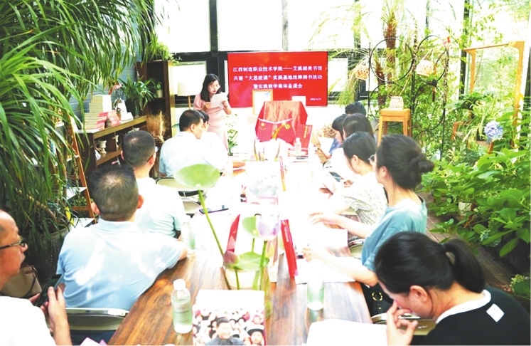 今年6月,江西制造职业技术学院艾溪湖美书馆“大思政课”实践教学基地正式挂牌,这是学校以思政夯实育人根基的创新之举。近年来,学校积极构建“3+4+5”红色文化铸魂育人格局,即实施“三红育人”(红色思政育人馆、红色宣讲团、红色文化名片),推进“四堂联动”(阅读红色经典的第一课堂、体验红色精神的活动课堂、创作红色作品的网络课堂、追寻红色梦想的社会课堂)红色实践育人,打造“五+一体”(红色文化+“四史教育”、红色文化+赣鄱特色、红色文化+年级分层、红色文化+专业特色、红色文化+融媒体)育人体系。