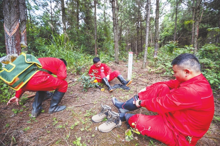 检测水下管道一切正常,廖涛等人整理好器具设备和防暑药品,赶往相邻的胡家村,检查埋在山林里的燃气管道。山林巡线结束,他们又来到永修县云山集团新华村,这里刚进行过高标准农田改造,极易造成燃气管道的埋深变化……一路下来,3名队员的衣服已经被汗水浸透。