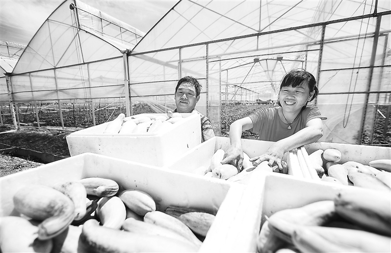 近日,抚州市东乡区孝岗镇何坊村果蔬种植基地内,村民在采收羊角蜜。当地引导农民发展特色产业,种植羊角蜜、香瓜等果蔬,拓宽增收渠道。