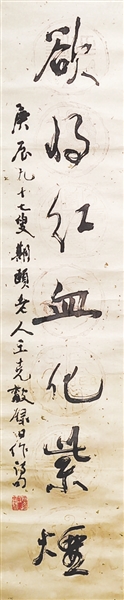 王克敌(1905—2002),吉安泰和人,原名开泰,字微之,晚号霜红老人,生前系中国书法家协会会员、省美术家协会会员、上饶市书协名誉主席。他早年毕业于北京朝阳大学,后连逢战乱,辗转各地,入报馆、当教员等,自1952年始在吉安师范任教至1973年退休,后定居上饶。