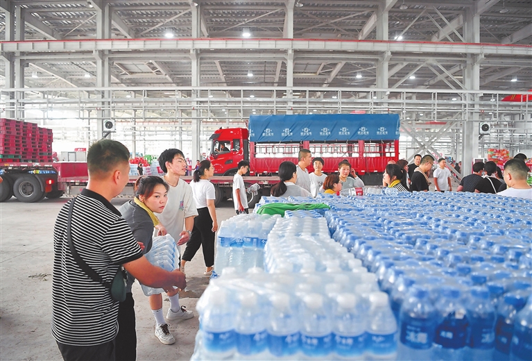 8月5日,大批来自全国各地的捐赠物资运抵河北涿州,支援当地受灾群众。