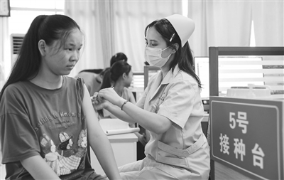 8月10日,在宜春市袁州区妇幼保健院HPV疫苗接种门诊内,适龄女生正在免费接种国产二价HPV疫苗。