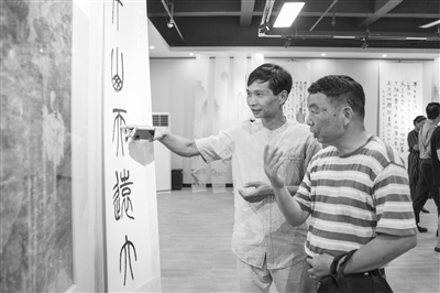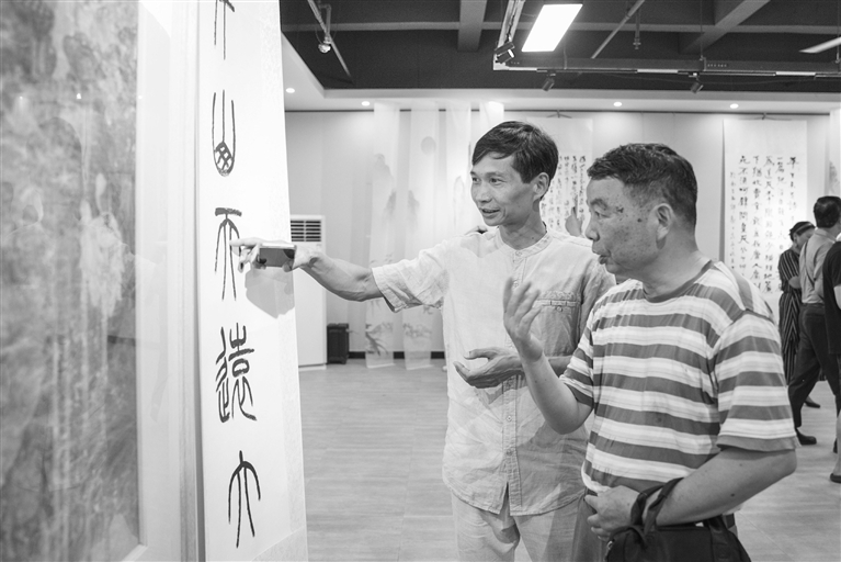 ▲近日,江西书画名家作品邀请展在南昌市青山湖区云观美学馆举行,21名书画名家展出了50余幅风格不同的书画作品,吸引众多市民前来观赏。本报全媒体记者 史港泽摄