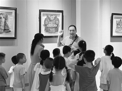 ◀8月7日,兴国县图书馆非遗展厅,非遗传承人正在向观众介绍客家刺绣。当天,兴国县举行客家刺绣作品展演活动,共展出客家刺绣作品30余件。 特约通讯员 陈 鹏摄