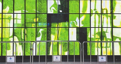 因“落霞与孤鹜齐飞,秋水共长天一色”而得名的秋水广场站,其公共艺术作品《洪城白鹭》(中图)的设计,巧妙地将湿地和白鹭相结合,通过灯光与数层玻璃重叠,翠绿的水景与闪烁的光影相互交织,形成独特的反射和重叠,营造出光影与虚幻并存的视觉效果。色彩影影绰绰,一泓苍翠若虚若实,或抽象或具象,呈现出“一城景色半城湖,湖光水影映洪城”的美景。