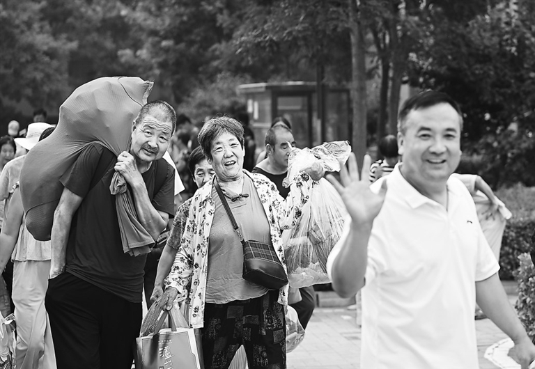 8月20日,在天津市西青区赤龙南街道一临时安置点,村民收拾行李准备回家。当日,天津市静海区东淀蓄滞洪区37000余名转移安置人员全部返回台头镇、独流镇、王口镇等地。