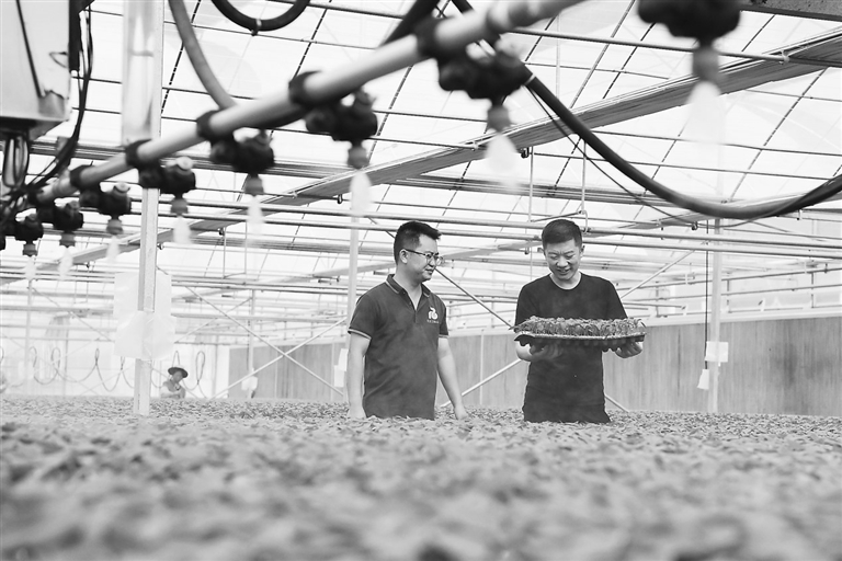 近日,宁都县青塘镇蔬菜育苗中心内,农户正在查看辣椒苗生长情况。近年来,该县大力发展现代农业,延伸农业产业链,不断拓宽农民增收渠道。 本报全媒体记者 焦俊杰摄