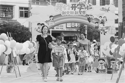 8月21日,贵州各地中小学迎来2023年秋季学期开学第一天。当日,一年级新生走进贵州省铜仁市第二十四小学校园。新华社发 (彭 俊摄)