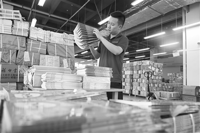 8月21日,四川新华文轩内江市东兴分公司工作人员在教材仓库内清点整理新学期教材。新华社发 (兰自涛摄)