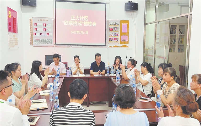 “今天是我们第四期‘欣享拾成’楼栋会,主要围绕‘小区公寓楼新南楼电梯安装居民自筹’的议题进行讨论交流,大家有什么问题都可以畅所欲言……”日前,在欣悦湖街道城开学苑社区的会议室里,一场“楼栋会”的举行,把居民代表和社区干部聚在了一起。