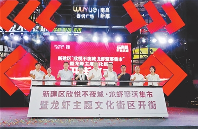据了解,前不久开街的“欣悦不夜城·龙虾聚落集市”是南昌市首个龙虾主题夜市。该夜市以打造省级高品质夜间经济街区为目标,已引进60余个摊位和龙虾主题亲子乐园、玻璃栈道等游乐项目,打造出集美食、购物、娱乐、文化等元素于一体的夜间消费新场景。夜市营业期间,仅8月的第三个周末人流量就达11万人次,销售额近370万元。