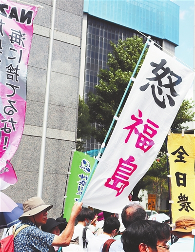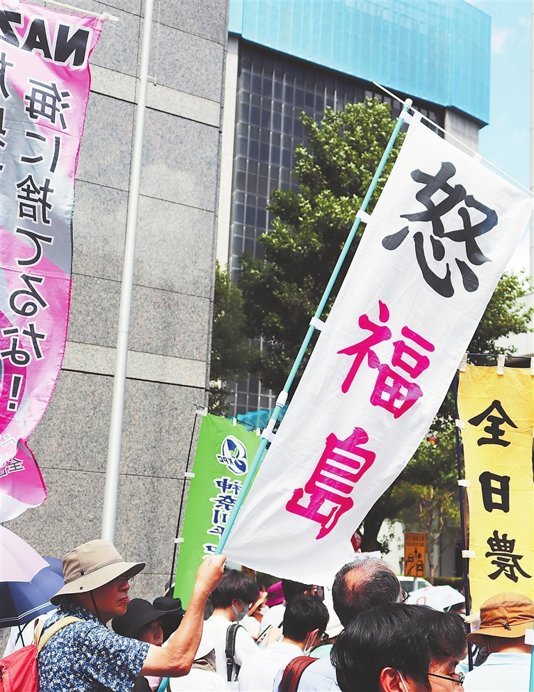 8月24日,日本民众在东京电力公司总部前集会,抗议日本政府和东电公司无视民意启动核污染水排海。新华社记者 杨 光摄