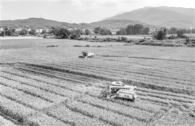 近日,莲花县升坊镇云溪村杂交水稻制种基地里,农民正驾驶农机收割水稻。近年来,该县采用“合作社+基地+农户”模式,种植制种杂交水稻1万多亩,助农增收。