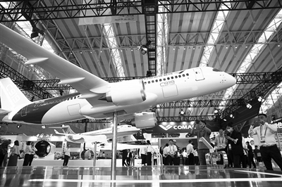 8月29日,参会者在中国商飞公司展厅拍摄C919飞机模型。当日,以“合作共享新机遇 创新激发新动能”为主题的第六届中国国际新材料产业博览会在哈尔滨启幕。