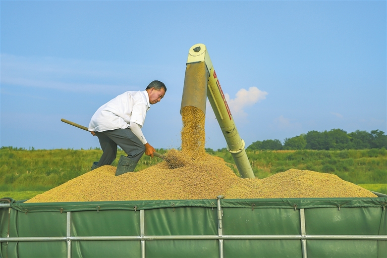 8月25日,湖口县城山镇陈仓村种粮大户正在收割再生稻。近年来,湖口县坚持走“公司+合作社+农户”发展路子,通过标准化生产、社会化服务、科技化示范、市场化合作,持续推动粮油高产高效。特约通讯员 张 玉摄