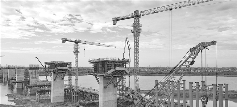 9月1日,昌九高铁南昌扬子洲赣江公铁大桥跨赣江南支工程现场,施工人员正在加紧建设。昌九高铁全长138公里,总投资320多亿元,建成后对推动沿线经济社会发展具有重大意义。
