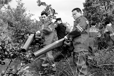 9月1日,在吉水县乌江镇周坑村,护林员正进行森林防火演练,提高护林防火救援能力。特约通讯员 廖 敏摄