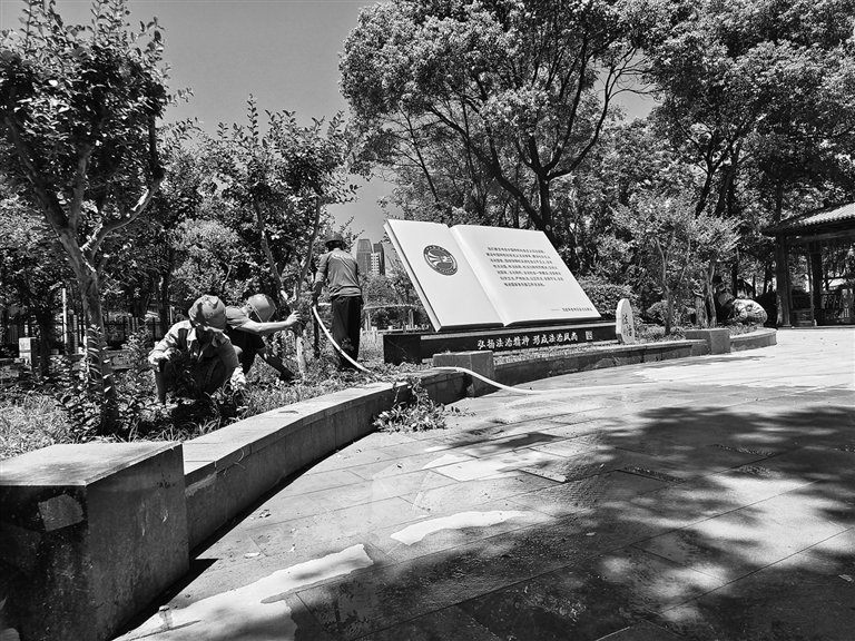 胡阿姨口中的特色小公园,是今年8月上旬刚竣工的东湖区有声普法广场公园,这是该区第50个“口袋公园”。该公园面积3134平方米,沿游步道设置法治文化墙、民法典宣传牌及法治宣传栏等,并附上可扫描听书的二维码,将法律科普知识植入游园指示牌和宣传牌中,具有普法功能和教育意义。