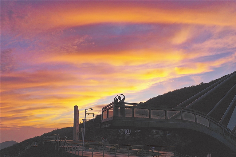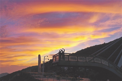 初秋时节,天气凉爽。9月1日傍晚,在南昌市湾里管理局洗药湖管理处高路入云端观景台,金色的余晖洒落在山头,如诗如画,游客们在这里俯瞰整个城市,感受大自然的壮观和城市的繁华。夜幕降临,不少游客支起帐篷,开始露营野餐。在美食和凉风中,人们忘却了城市的喧嚣和繁忙,尽享惬意悠闲的时光。本报全媒体记者 史港泽摄