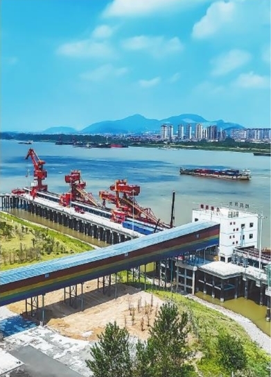 九江港瑞昌港区金丝港作业区码头整合工程日前通过竣工验收,标志着项目进入正式运营阶段,九江港整体新增通过能力3300万吨。图为近日该港作业区码头,船舶在泊位上有序装卸货物。特约通讯员 魏东升摄