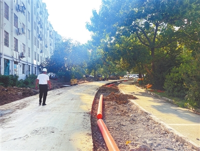 “就这两天才恢复的施工,之前停工了一段时间。”小区居民王大爷说,因为道路开挖,小区内车辆乱停,加之扬尘比较严重,所以看到停工大家很着急,希望能尽早完工。“听说是因为小区内自来水管铺设较浅,开挖时很容易挖断水管,导致施工方不敢轻易动工,前几天还因为挖断水管整个小区都停水了。”