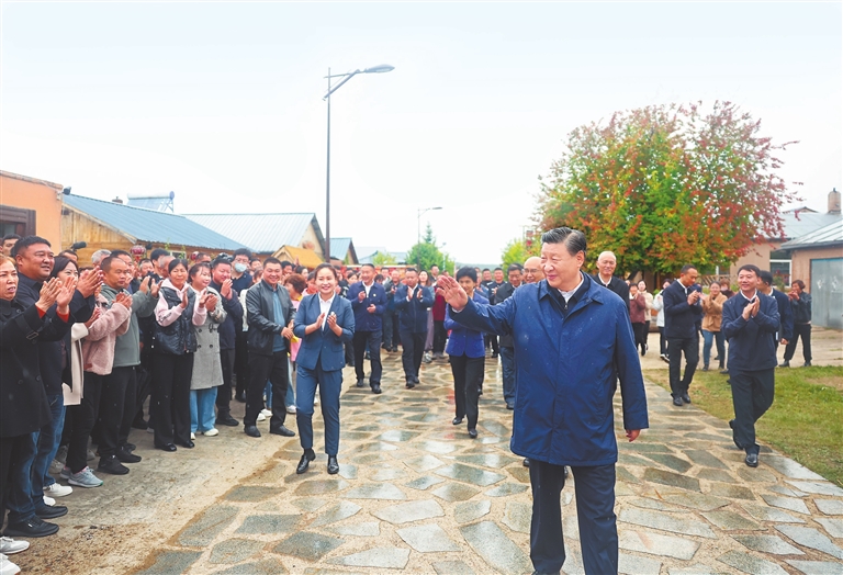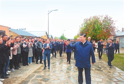 离开小院时,当地群众在道路两旁热情欢送总书记。习近平亲切地对大家说,北极村前景可期。希望广大干部、群众共同努力,把乡村建设得更好、把生态保护得更好、让人民生活得更好,共同奔向中国式现代化的美好未来。