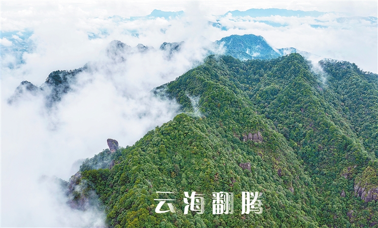 近日,一场秋雨过后,资溪县大觉山上云海翻腾,青山绿水掩映其中,若隐若现。游人徜徉其中,尽览壮丽美景。本报全媒体记者 徐 铮摄