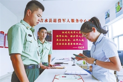 本报讯(易永艳)“本以为比较复杂,但这里的‘一站式’服务出乎意料很便捷,不到30分钟就办好所有事项。”近日,吉水县退役军人周军向江西新闻客户端“党报帮你办”频道反映,该县的吉水县退役军人服务中心,为返乡退役士兵提供“一站式”接收报到服务,暖心又贴心。据悉,吉水县退役军人事务局联合相关部门开展军人退役“一件事一次办”工作。开设退役军人报到接收、预备役登记、退役士兵信息采集等服务,通过集中代办等方式让退役士兵返乡更好地享受“一站式”服务。