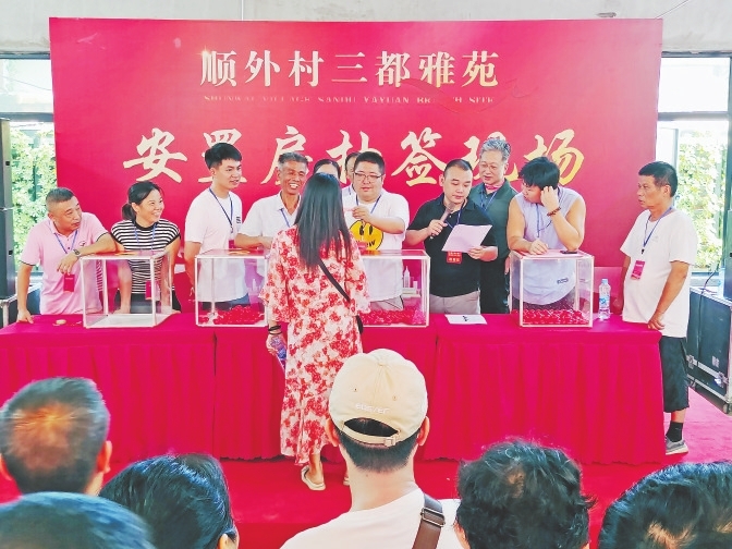 本报讯(全媒体记者付强)“现场制作签号,现场摇号、报号,选房全程录像,村务监督委员会全程监督。”日前,南昌市青山湖区湖坊镇顺外村村民万晨罡告诉记者,他抽到一套127.66平方米的安置房,并对选房结果十分满意。为了确保此次分房公平公正,9月,湖坊镇和顺外村成立了分配工作领导小组,一对一上门为群众服务,研究制定分房方案和分房流程,并邀请湖坊镇纪委、人大代表、党员代表、群众代表共同监督,让234户拆迁安置户分到了满意的房子。