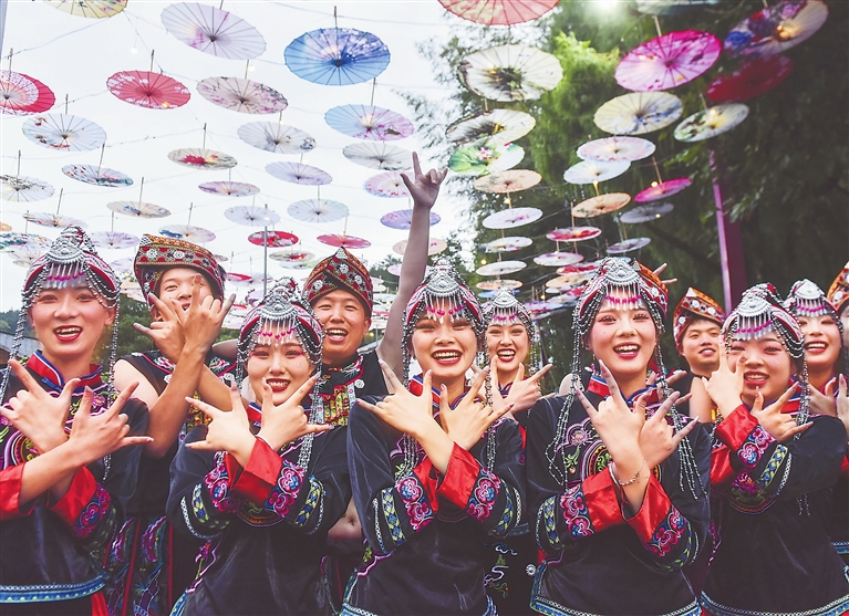 9月15日,资溪县乌石镇新月畲族村青年男女在村头迎接游客。当日,以“畲乡文化促发展 共同富裕闯新路”为主题的畲族民俗文化节活动拉开帷幕。特约通讯员 吴志贵摄