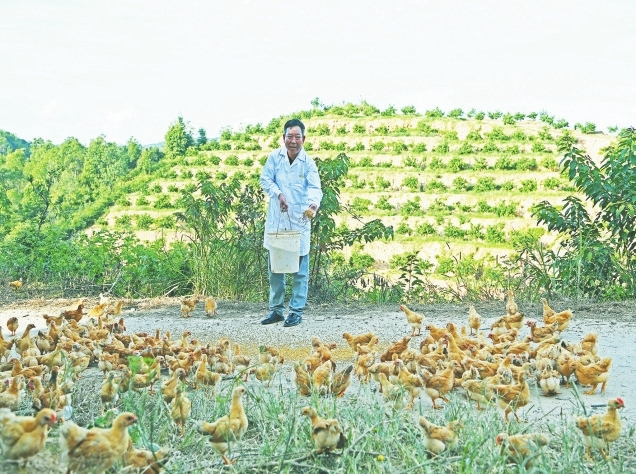 9月12日,宁都县长胜镇樟坑村鑫龙万羽富硒黄鸡基地,山林苍翠。密林下,成群结队的黄鸡或聚集觅食,或悠闲散步,或追逐嬉戏,鸡鸣声此起彼伏。“今年,在县农业农村局的指导下,我们的鸡全部按照富硒标准进行散养,经过权威机构认证,肉中含有丰富的蛋白质、氨基酸、维生素和硒元素等营养成分,是名副其实的富硒鸡。”宁都鑫龙食品有限公司总经理谢声福向笔者介绍,从去年开始,该公司大力推行富硒鸡散养,富硒鸡肉质细嫩,口感鲜美,市场反响相当好,深受粤港澳大湾区客户的青睐。据了解,为发展好黄鸡产业,宁都推出“公司+基地+养殖户”“合作社+基地+养殖户”“公司+合作社+基地+养殖户”三种生产经营模式,富硒黄鸡已走向规模化、产业化发展道路。截至目前,宁都县已成立黄鸡专业合作社54家,全县24个乡镇规模养殖户3160户,其中万羽规模以上的养殖专业户1506户,产业就业人员2万余人,户均年增收4万元以上。2022年,全县实现宁都黄鸡出栏6000万羽,产值20亿元。