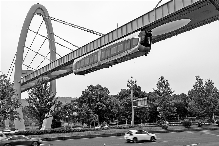 我国首条空轨线路开通运营