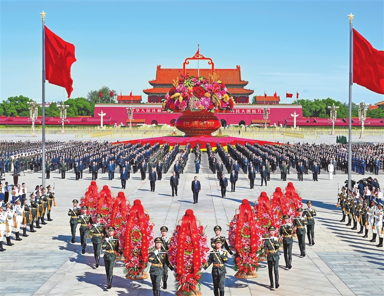 中央党政军群有关部门和北京市主要负责同志,各民主党派中央、全国工商联负责人和无党派人士代表,在京老战士、老同志和烈士亲属代表,在京功勋荣誉获得者代表,全国少数民族参观团成员,首都各界群众代表等参加了仪式。