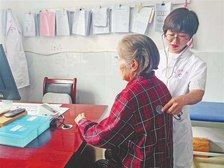 “老人家,您哪里不舒服?”“最近咳嗽得厉害吗?我给您用听诊器听一下。”9月24日中午,在安义县长均乡卫生院内,医生徐宏磊在向一名老人仔细问诊。“我给您开点药,您先吃着,有问题再来。”临走时,她拉着老人的手叮嘱说:“做菜少放点辣椒,走路慢点,别摔着!”